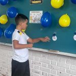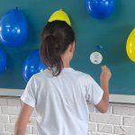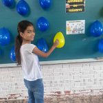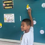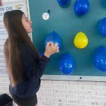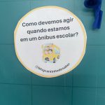 Várias perguntas sobre placas, rodovias e segurança foram colocadas nas bexigas, as crianças tinham que estourar e responder a pergunta sorteada.
