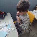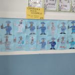 Os alunos foram incentivados a recortar, montar e colar sua foto como um agente de trânsito. Depois montamos um painel o trabalho finalizado. No final da aula foram confeccionados quepes de policial para usarem, enfatizando que eles podem ajudar como agentes mirins de trânsito.