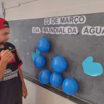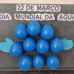 No dia 22 de março é comemorado o Dia Mundial da Água. Com o objetivo de trabalhar o tema foi oportunizado aos alunos uma dinâmica envolvendo perguntas relacionadas ao tema. Os materiais utilizados foram balões azuis, perguntadas escritas no papel e colocados dentro de cada balão. Os balões foram fixados na lousa onde cada aluno estourou um balão e respondia a pergunta referente ao tema finalizando com a interação entre os demais alunos.