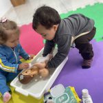 Dar banho nas bonecas, observando a aprendendo sobre a importância da água em nossas vidas.