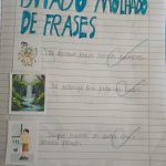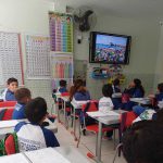 Iniciamos a aula com a leitura da revista ZÉ QUEST (2017), projetada na TV da sala, seguida de uma conversa sobre o tema abordado na publicação. Em seguida, realizamos a leitura do texto sobre Tipos de água. A turma assistiu a um vídeo sobre poluição da água. Na sequencia foi realizada a atividade “ditado molhado de frases” com o tema água ( poluição, cuidado e economia…).
