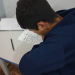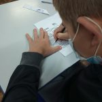 Realização de uma atividade onde as crianças deveriam colocar a letra de acordo com os números indicados