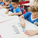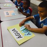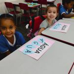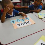 Nesta atividade, construímos a palavrinha “água”, observando a quantidade de letras, a letra inicial e final. Conversamos sobre a importância dela na nossa vida e os cuidados que devemos ter para não desperdiçá-la.