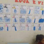 Após as discussões foi proposto a realização de uma atividade manual com tinta guache, representando gotinhas de água conforme fotos abaixo.