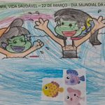 Desenho sobre água limpa, vida saudável(pintura, recorte e colagem).