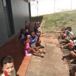 Também mostrou aos alunos como a água gira no nosso planeta e suas transformações em sólido, líquido e gasoso. Levou as crianças à cantina da escola para mostrar o estado gasoso da água através do vapor; nas torneira mostrou o estado líquido e o estado sólido fez se um gostoso geladinho onde a criança pode observar a transformação da água do estado líquido para o sólido.