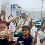 Alunos do 1º, 2º e  3º anos, durante a semana da água trabalharam o tema em sala com os professores, lá abordaram sobre os cuidados com a água quanto a seu uso, sobre sua importância para a vida. Foi um momento de muita conversa e reflexão e para finalizar os alunos, confeccionaram seus livrinhos e ficaram felizes, pois iriam levar seus livros para casa e mostrar aos pais e assim falar com eles também um pouco sobre o assunto.