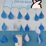 - Chuva com gota de água e com colagens de tiras de crepom no copo, parecendo água;
