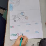 Para concluir a aula, os alunos realizaram desenhos representando onde utilizam a água em seu dia a dia.