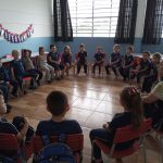 Roda de conversa realizada com os alunos do 1°ano B, Escola Municipal Bom Jesus, Mandirituba, turma com 25 alunos, período da manhã. Nosso diálogo retomou o conhecimento prévio das crianças nas relações já estabelecidas por influência familiar. Todas as crianças tiveram um momento para expor suas particularidades de como utilizam a água em suas casas, (atitudes práticas, economia, cuidados, etc). Após realizaram trabalho em grupo através de registro, construindo um cartaz. Finalizamos cantando a música, “A Água” Cristina Mel.