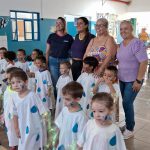 As crianças fizeram uma apresentação sobre a água no pátio da escola. Cantaram e dançaram. Aprenderam a importância da água para o meio ambiente na vida dos seres vivos. O objetivo era que elas tivessem a noção do desperdício e da economia da água em seu cotidiano.