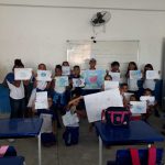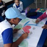 Em grupos, os alunos concluíram as atividades sobre a água, ilustrando de forma criativa suas descobertas em relação ao que deve ser feito para preservar a água do planeta.