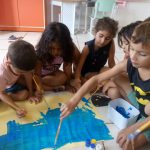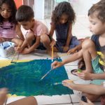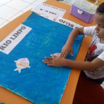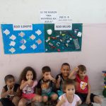 Foi confeccionado um rio limpo e um rio sujo, para que eles perceberem o cuidado que precisamos ter com a água para ter peixes nos rios, mares e lagos e a importância do reciclado e não jogar o lixo em qualquer lugar.