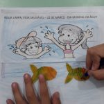 Os alunos realizaram atividades de pintura, recorte e colagem, enfatizando a preservação dos nossos rios para nossa sobrevivência e também dos animais que ali vivem.