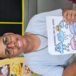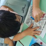 Nicolly pintando o desenho sobre o lixo seletivo, após aula expositiva