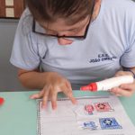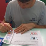 Antonio Carlos feliz ao terminar seu desenho