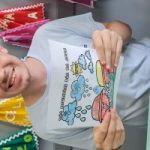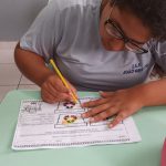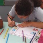Bianca Isabella terminando seu desenho sobre o lixo seletivo