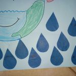 Em uma roda de conversa, os alunos aprenderam sobre a importância da água para a vida do ser humano e como podemos economizá-la. Em seguida, foi apresentada a música: “De gotinha em gotinha” – palavra cantada. Cada aluno recebeu um papel azul cortado em formato de gota, os alunos desenharam um rostinho na gota. Em outro momento foi confeccionado um cartaz, onde os alunos participaram fazendo a pintura do cartaz e a colagem das gotas.