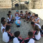 A professora Joyce juntamente com seus alunos fizeram observações sobre o globo terrestre, que à uma grande quantidade de água existente porém a água doce é um recurso limitado e devido a alterações climáticas e poluição o bem-estar do homem corre perigo.