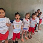 Em seguida fizemos a roda da conversa, onde os alunos ficaram muito empolgados e fizemos um jogral sobre o ciclo da água, com isso conversamos sobre algumas atitudes simples que são importantíssimas para a redução do consumo da água: banhos rápidos, sempre fechar as torneiras e chuveiros quando estiver utilizando; usar bem uma mesma  roupa antes de lavar; fazer sempre que possível a reutilização de água durante a limpeza de calçadas e jardins; não lavar carros com mangueiras; consertar algumas infiltrações existentes e utilizar com registros e controle de uso. Com essas atitudes, cada aluno apresentou entusiasmo para o desenvolvimento e conscientização para desempenhar a importância da água uso e não abuso para família e comunidade assim promovendo práticas que incentivem  a preservação e o uso consciente desse recurso vital.