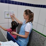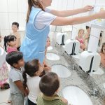 Chamar a atenção das crianças sobre o desperdício de água no uso do banheiro: usar a descarga do vaso somente quando necessário, lavar as mãos corretamente e desligar a torneira enquanto escova os dentes.