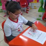 Através de roda de conversa, conversamos sobre a importância de cuidar do nosso Planeta. Que não devemos jogar lixo nas ruas, nos rios, pois o nosso mundo vai ficando cada vez mais poluído e doente. Preservando, teremos a conservação dos rios , mares, não teremos desmatamentos e os animais e os seres humanos viverão num mundo melhor. Depois cada criança realizou sua atividade pintando o caminho que o coletor deveria fazer para chegar até o latão de lixo.