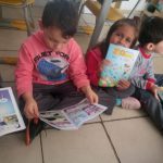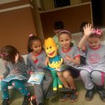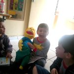 Apresentação do novo amigo. Contato das crianças com o novo visitante e entrega das revistas.