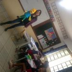 Alegrando com o mais novo visitante da escola. Gil
