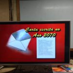 Reprodução do vídeo “Carta da Água escrita no ano 2070”. Após a exibição do vídeo, nós, professores e alunos da EJA, debatemos sobre o futuro de nossos filhos e netos se continuarmos praticando as mesmas atitudes e vícios. As cenas exibidas propiciaram um momento bastante oportuno para reflexões e debates sobre a questão da água.