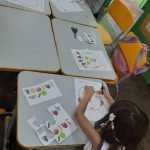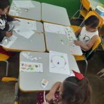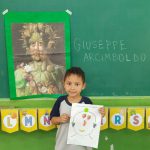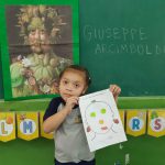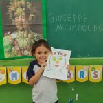 Na sequência, desafiei as crianças a fazerem sua própria releitura da obra, criando um rosto com alimentos utilizando recortes e colagem.