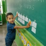 Em seguida, foram apresentadas imagens de diversas frutas, e juntos construímos uma lista coletiva com os nomes delas, incentivando o reconhecimento e a escrita.