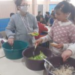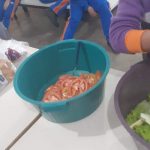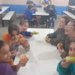 Conversando sobre algumas plantas e para que servem, a professora de inglês, explorou verduras, legumes e frutas.