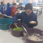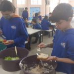 Descreveram uma receita em inglês e por último, fizeram um sanduiche natural, estimulando além de hábitos conscientes com o meio ambiente, também alguns hábitos saudáveis são muito importantes.