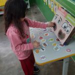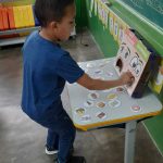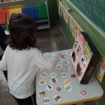 Na atividade seguinte, cada criança recebeu a imagem de um alimento, e juntas montaram um cartaz coletivo, separando os alimentos em duas categorias: saudáveis e não saudáveis. Para finalizar, participaram de uma dinâmica lúdica: cada criança escolheu dois alimentos e os colocou em uma “boca” (caixa), no local correspondente — reforçando de forma divertida o aprendizado sobre boas escolhas alimentares.