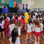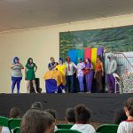 Para ampliar essa reflexão, as crianças participaram de uma atividade em forma de teatro, realizada pelos professores de educação física do município. Nesse momento, as crianças puderam acompanhar situações que relacionam sentimentos, alimentação e meio ambiente. De forma lúdica, representaram a alegria de comer frutas fresquinhas, a importância de proteger a natureza e o cuidado que devemos ter com o planeta para mantermos nossa saúde em equilíbrio.