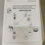 Nesta atividade, a partir da leitura da comanda feita pela professora, os alunos relacionaram cada ser vivo ao(s) alimento(s) que eles consomem.