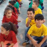 Os alunos ensaiaram uma coreografia para apresentar na escola.
