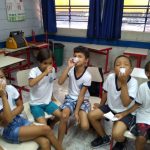 Na prática, os alunos exploraram algumas ervas que são usadas em chás e puderam saboreá-los em sala.