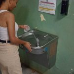No banheiro, a orientação é fechar a torneira após usar e dar descarga apenas quando necessário. Nos bebedouros, os estudantes são incentivados a usar apenas a quantidade de água que precisam e manter o espaço limpo. Já nas torneiras, abrir apenas o necessário e comunicar vazamentos faz parte do cuidado coletivo.