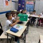 Alunos do 3ºA da Professora Solange Faria Sinhoretti Uliana aprendem sobre reciclar e Reutilizar com a Caixa Surpresa: Brinquedos recicláveis