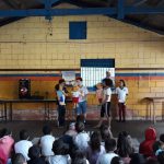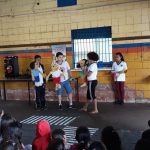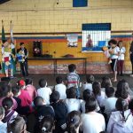 Alunos dos 5º ano D da Professora Alini Rodrigues da E. M. “Maria Aparecida Ungaretti” apresentam teatro para celebrar a Semana Nacional do Trânsito.