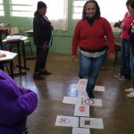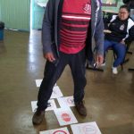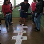 Após estudarem bastante sobre o significado das placas de trânsito, os alunos da EJA participaram de uma brincadeira onde tiveram a oportunidade de mostrar o conhecimento adquirido. a brincadeira escolhida foi a  Amarelinha, porém em um formato diferente, com as placas de trânsito.  O aluno jogava a pedrinha, onde caía,  tinha que falar o significado da placa e não podia pisar naquela placa. Eles se divertiram bastante e mostraram que estão craques em placas de trânsito.