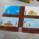 Em sala de aula fizeram, frases e poemas e alguns desenhos sobre a segurança no trânsito.