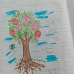 Aproveitando o conteúdo da aula de ciências, onde as crianças estudaram as partes das árvores e o ambiente das plantas. Fizemos uma roda de conversa falando sobre o cuidado com as plantas e como podemos colaborar para sua preservação. Em seguida, fizemos um registro no caderno.