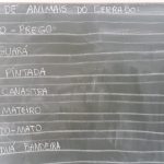 A professora fez um levantamento dos animais que as crianças conhecem em seguida foi mostrando quais eram do Cerrado e apresentando outros que elas ainda não conheciam.
