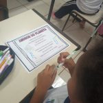 Hoje os alunos confeccionaram a última página do livrinho do Meio Ambiente, onde conheceram o texto Amigos do planeta da autora Djanane Alves. Posteriormente será montado os livrinhos e será realizada uma exposição do material confeccionado com os alunos.