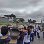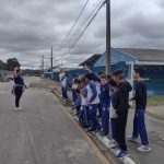 A mudança no trânsito em frente a escola foi projetado para ser de mão única, conforme a solicitação da comunidade escolar, com acesso para embarque e desembarque dos estudantes, pista de rolamento, travessia elevada, estacionamento para carros, estacionamento para ônibus e vans. Após a observação do desenho da Arquiteta os estudantes foram até a obra localizada em frente a escola, lá puderam ver presencialmente como está ficando a mudança, localizamos os itens do desenho, as sinalizações e conversamos sobre como ficou bom essa nova pavimentação da escola.