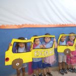 A professora da Educação Infantil fez um ônibus com material reciclado e os alunos na semana do trânsito brincaram com o mesmo.