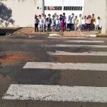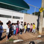 Essas atividades foram realizadas fora do prédio escolar na qual as crianças puderam observar a sinalização de trânsito e aprender a atravessar a rua com segurança.
