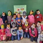 Nessa atividade conversamos com os alunos a respeito dos animais brasileiros em extinção e ameaçados. Os alunos foram levados a refletir sobre os vários animais que encontram-se, atualmente, ameaçados de extinção em decorrência da destruição do habitat, poluição, mudanças climáticas, caça e pesca descontroladas, catástrofes ambientais entre outros fatores. Animais ameaçados de extinção são aqueles que correm risco de desaparecer de maneira definitiva do nosso planeta, ou seja, de tornarem-se extintos. Apesar de ser relativamente comum na natureza, atualmente, o processo de extinção tem sido intensificado pelo homem. Conversamos sobre quais são as melhores medidas para proteger aos animais e atitudes que podemos tomar. Levamos para a sala algumas figuras desses animais, produzimos um cartaz com a foto e o nome de alguns deles, muitos alunos relacionaram os animais com a turminha criada pela Arteris. No final da atividade os alunos levaram para casa as máscaras dos personagens da Turminha da floresta.
